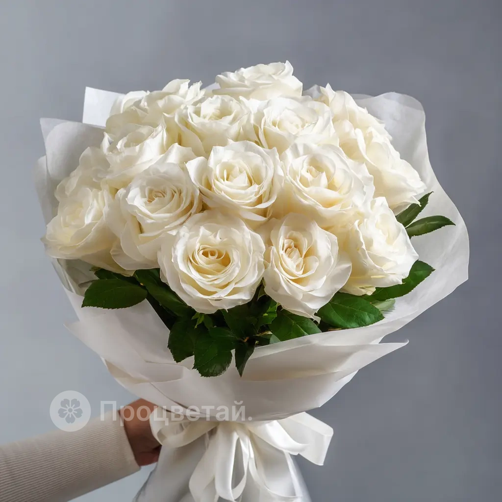 Изысканный букет из белых роз, словно пропитанный молочной мягкостью. Идеален для признания в уважении, благодарности или для подарка на утро свадьбы. Белые розы подчеркивают чистоту и деликатность момента.