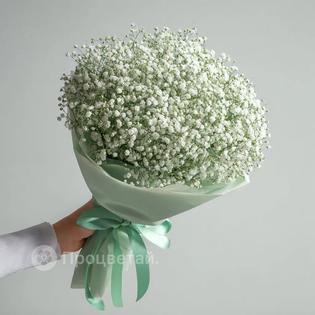 ГлавнаяКаталогБукетыМонобукет из гипсофилы «Молочная вуаль»