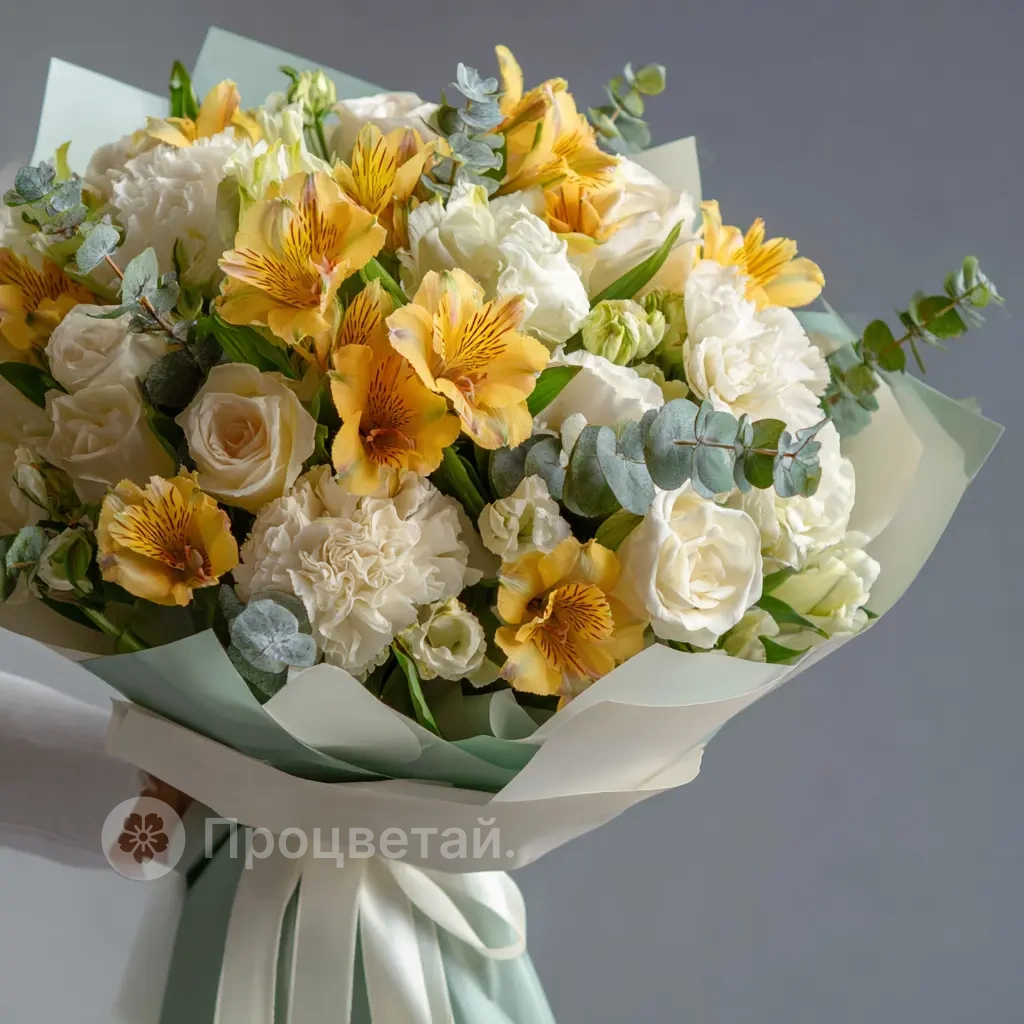 Нежный и бодрящий букет, словно лучи утреннего солнца. Альстромерии дарят свежесть и тепло, заряжая позитивом с первого взгляда. Подойдёт для подарка на день рождения, встречу или в качестве доброго жеста.