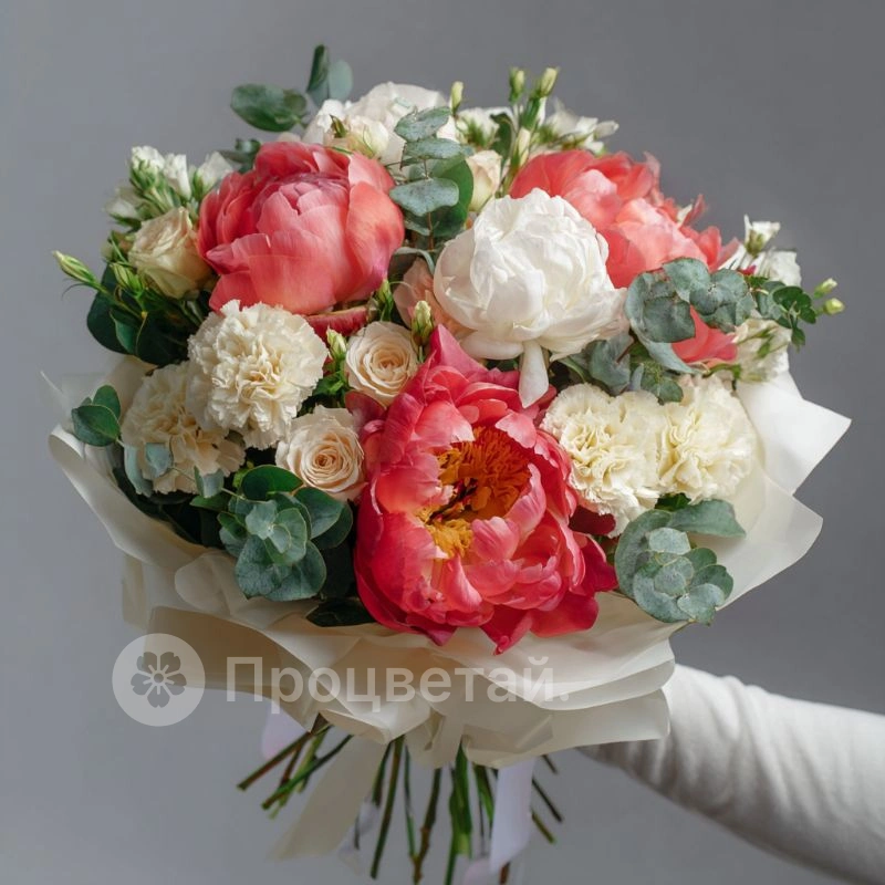 ГлавнаяКаталогБукетыБукет с пионами «Персиковый закат»