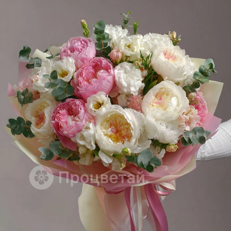 Букет с пионами «Снежное прикосновение»