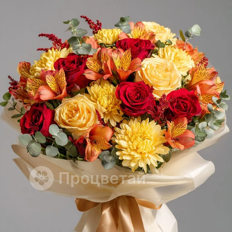 Букет с хризантемами «Огни сентября»