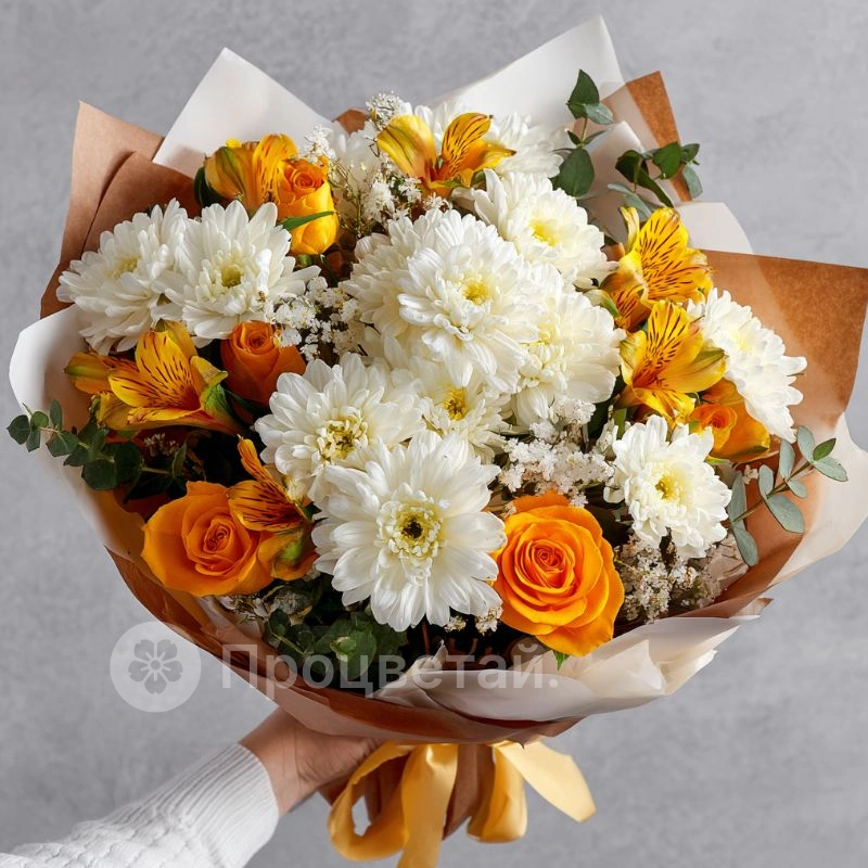 ГлавнаяКаталогБукетыБукет с хризантемами «Симфония сентября»