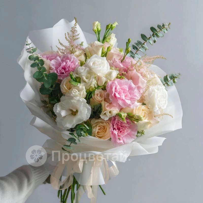 Букет с эустомами «Светлая вуаль»
