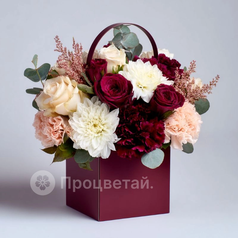 ГлавнаяКаталогКомпозицииЦветы в сумочке «Ароматный стиль»