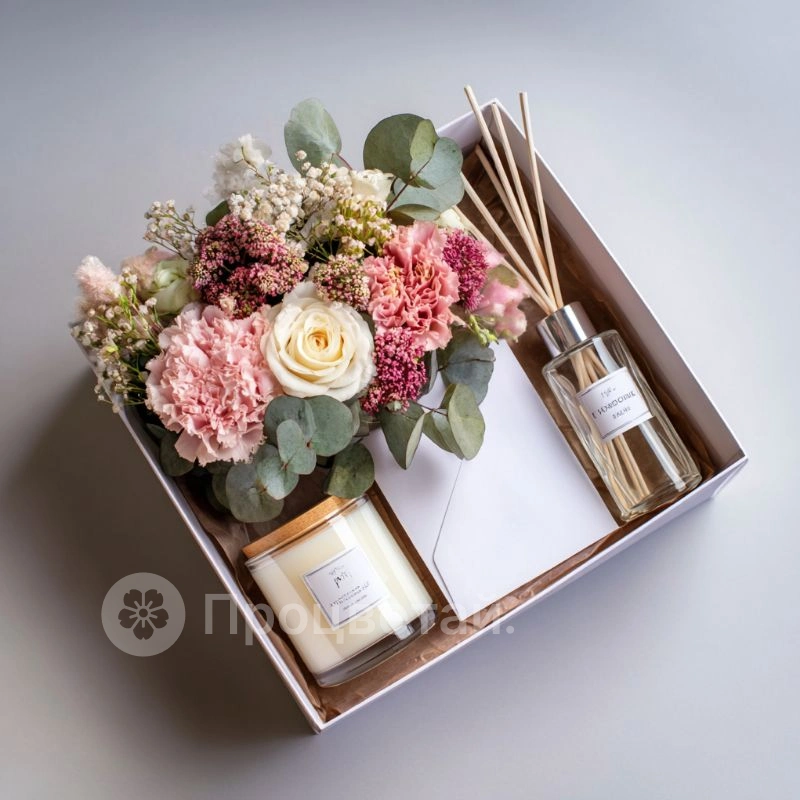 Этот набор, словно глоток чистого летнего воздуха, наполнит ваш дом лёгкостью и цветочной гармонией. Нежная флористическая композиция, интерьерная свеча и тонкий шлейф аромата из диффузора создадут атмосферу пробуждения и радости.